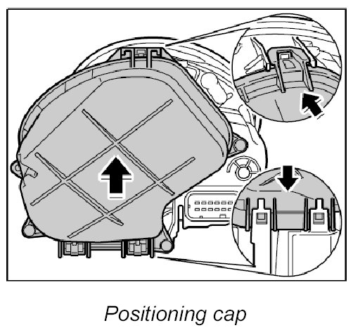 1. Position cap on main headlight and press into place, making sure that the cap engages once at the top and twice at the bottom.