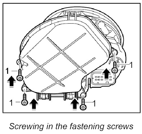 2. Screw in four fastening screws -1- for the cap.