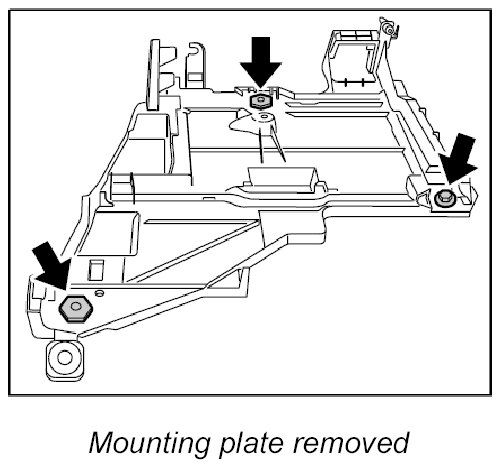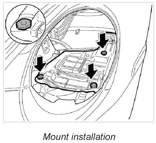 1. Push the mount into the body and screw down with three knurled nuts. - Tightening torque: 6 ft. lbs. ± 1.5 ft. lbs.