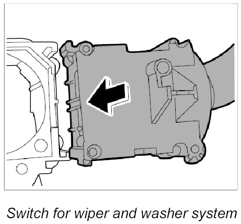 5. Pull switch for wiper and washer system -D- up and out of the mount.