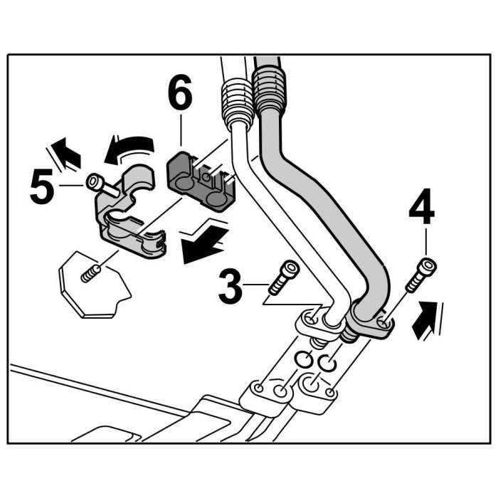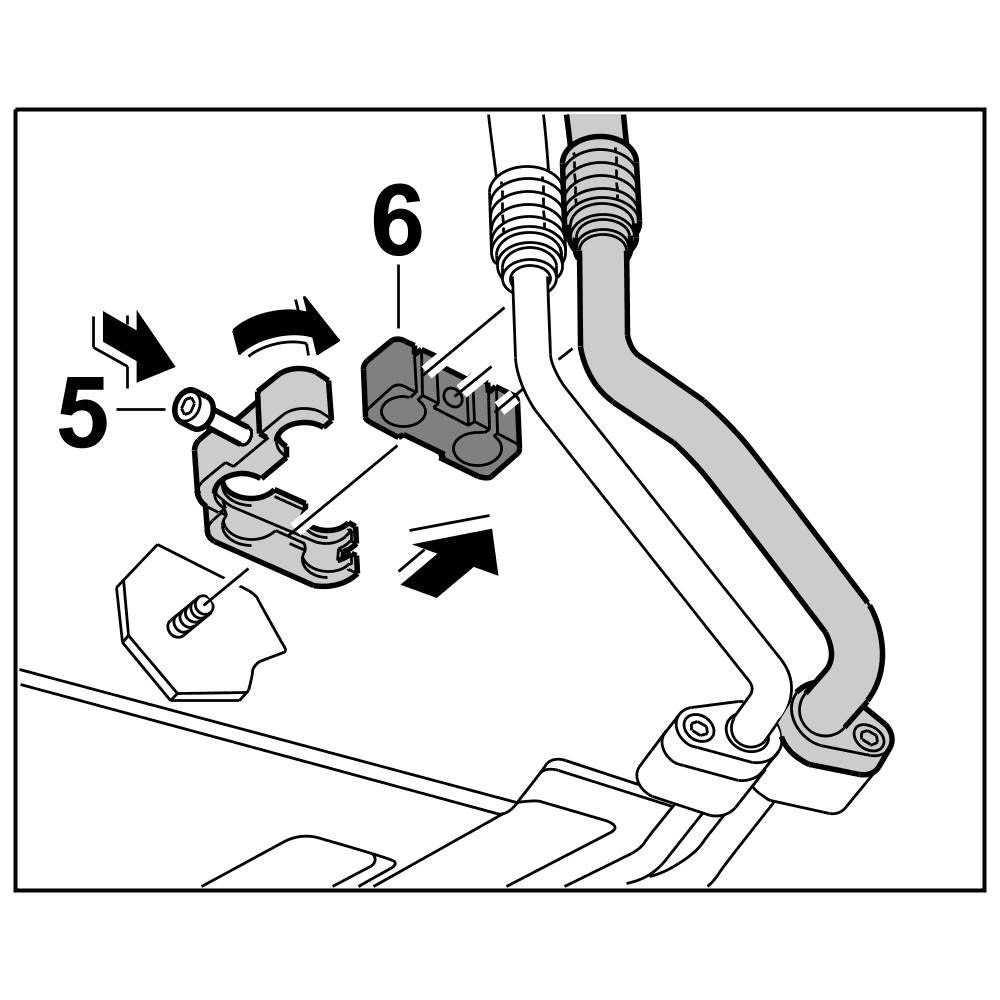 4. Insert line in underbody area into rubber mount -6- , close support and secure with fastening nut -5-.