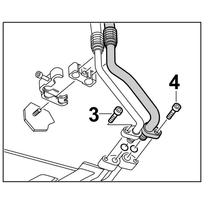 2. Insert line into evaporator line and secure using the fastening screw -4-. => Tightening torque: 14 Nm (10.5 ftlb.)