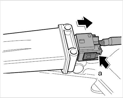 4. Release connector -arrow a-, pull off, and remove tire pressure monitoring system antenna.