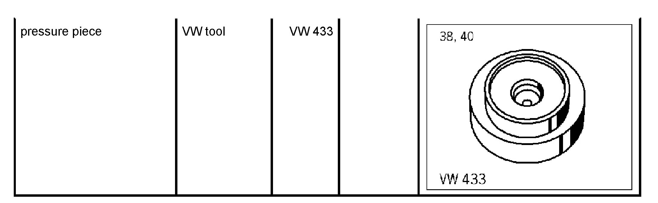 Information: To press out the inner bearing race of the old wheel bearing, pull the inner bearing race several millimeters off the wheel hub using a two-claw puller so that the separator can be put into place. To do this, use a two-claw puller together with a pressure piece VW 433, for example.