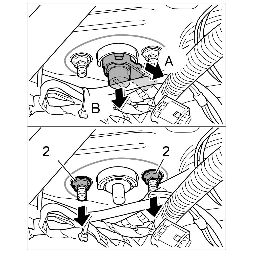 7. Screw down power distributor with the two fastening screws -2-. => Tightening torque: 11 ftlb.