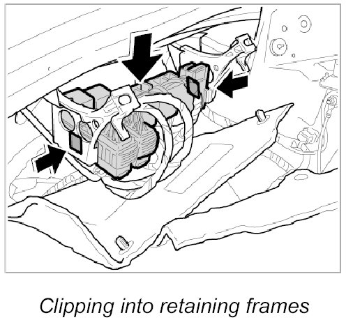 1. Clip relay carrier into the retaining frame at the left and right.