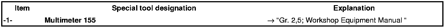 Before measuring the closed-circuit current, determine the vehicle equipment (I numbers) and establish the expected closed-circuit current with the aid of the attached table.