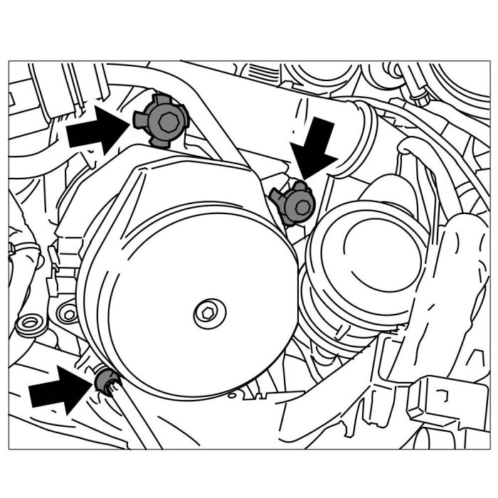 4. Carefully press cable duct down by hand and screw in and tighten the three Torx screws (M6 x 50) -arrows-.=> Tightening torque: 7.5 ftlb..