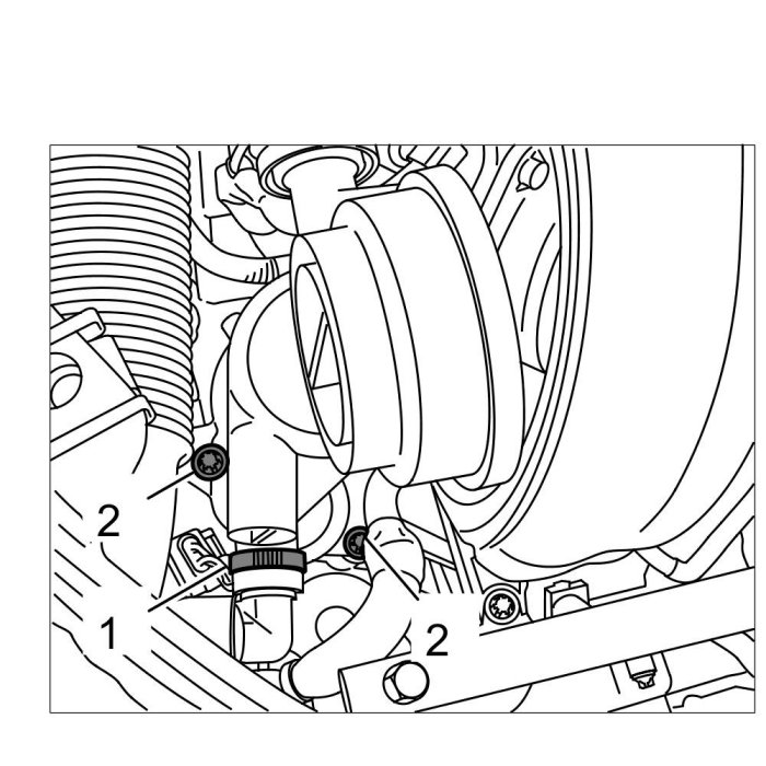 3. Fit and tighten two new Torx screws (M6 x 20) -2-. => Tightening torque: 7.5 ftlb..