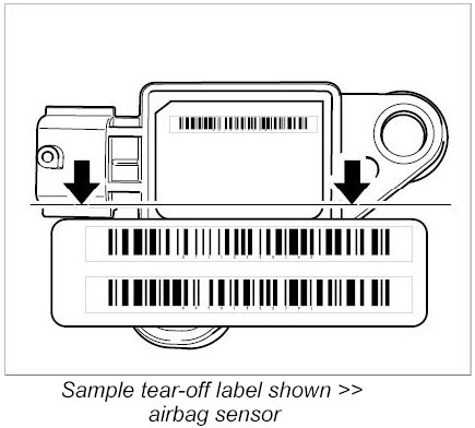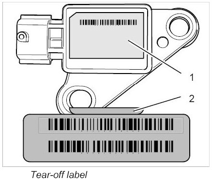 INFORMATION: If a new component (e.g. sensor, airbag control unit, airbag unit) of the airbag system has to be installed, the new component will be supplied with a barcode sticker (tear-off label).