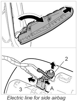 1. Push on the electric connector for the side airbag -3- and lock it.