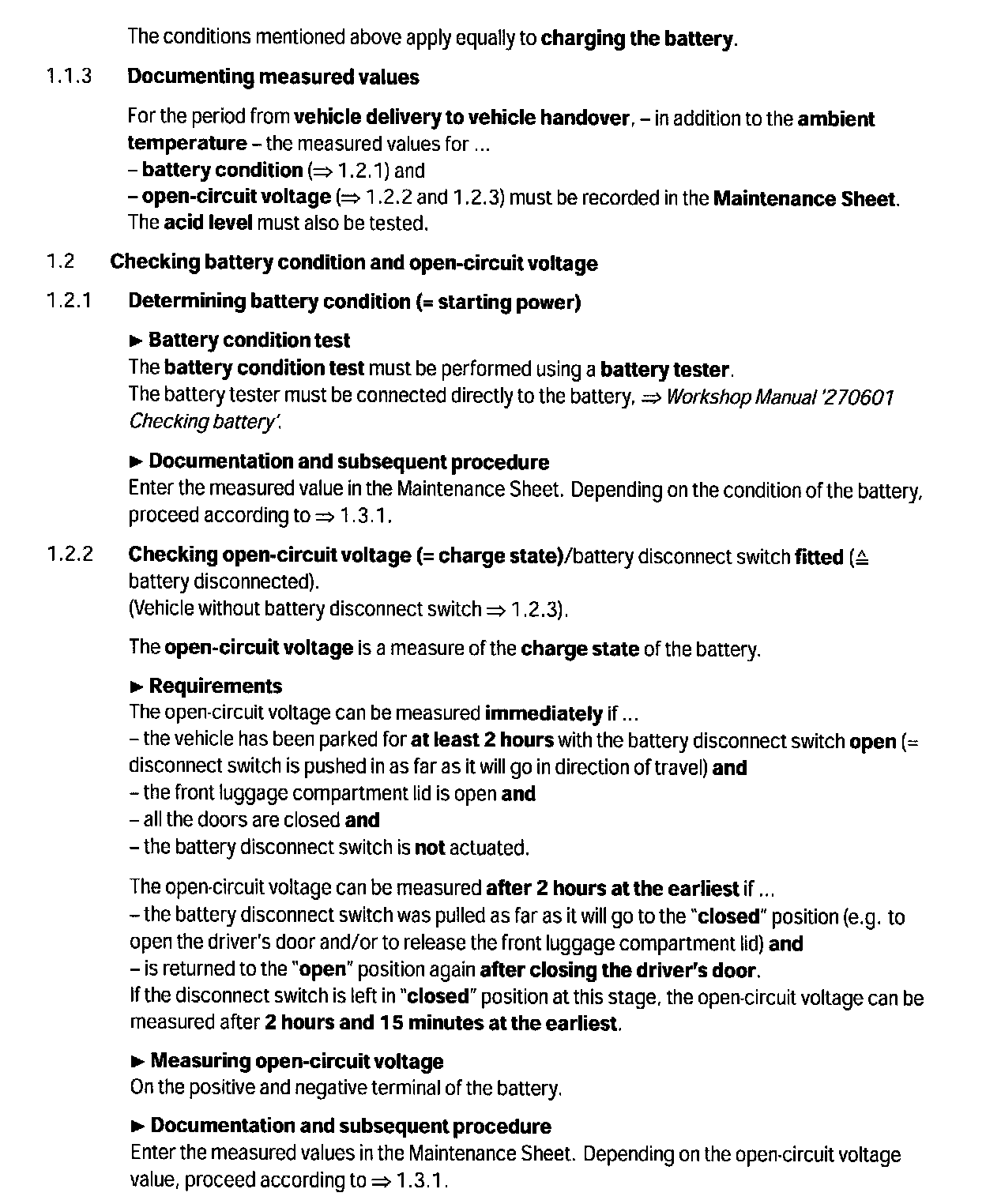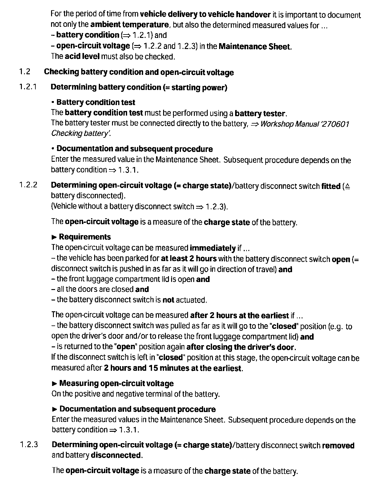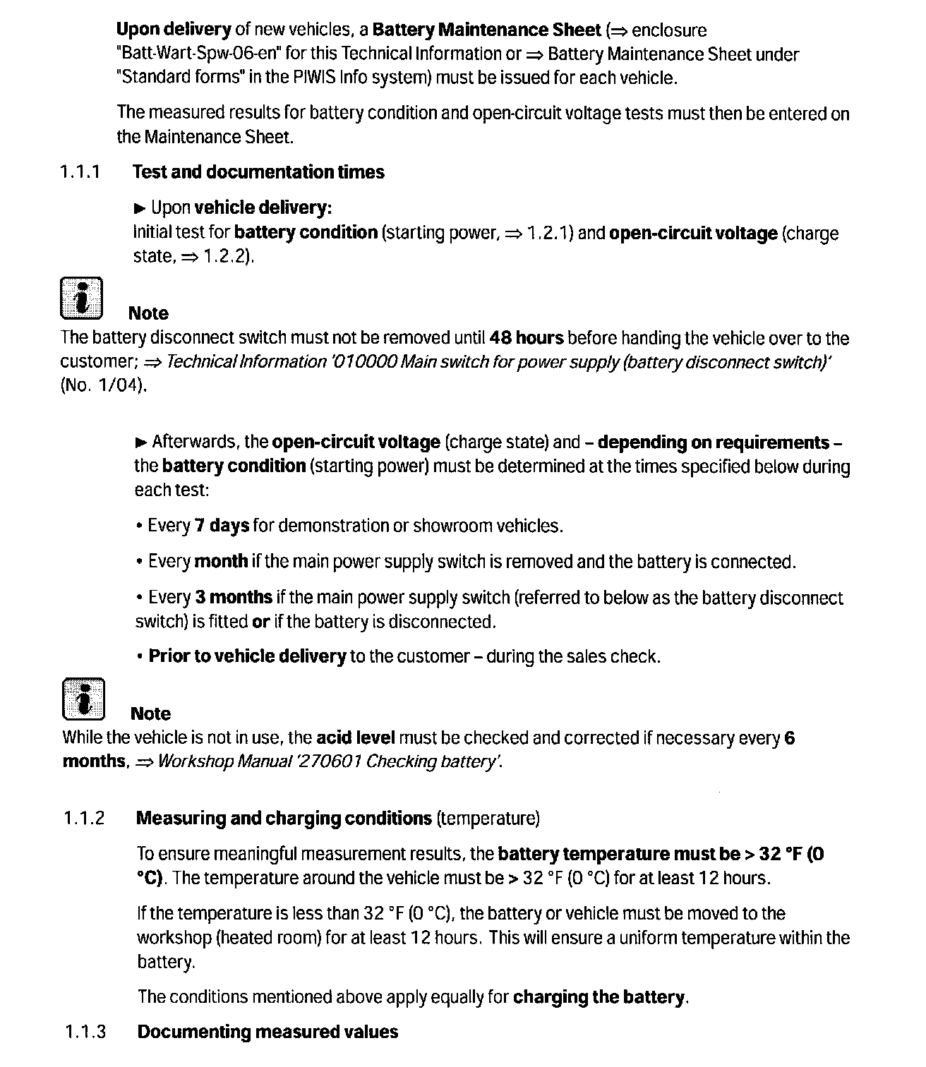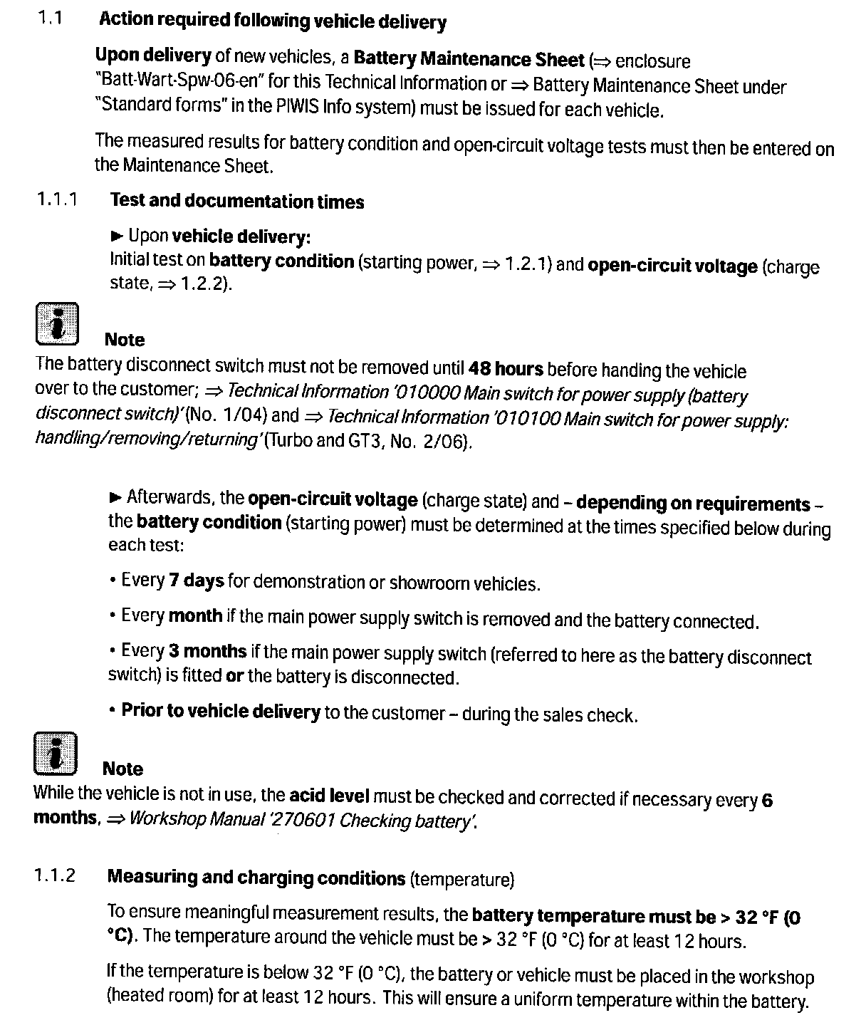 --> Technical Information '010700 1 Battery care and maintenance prior to vehicle delivery'
