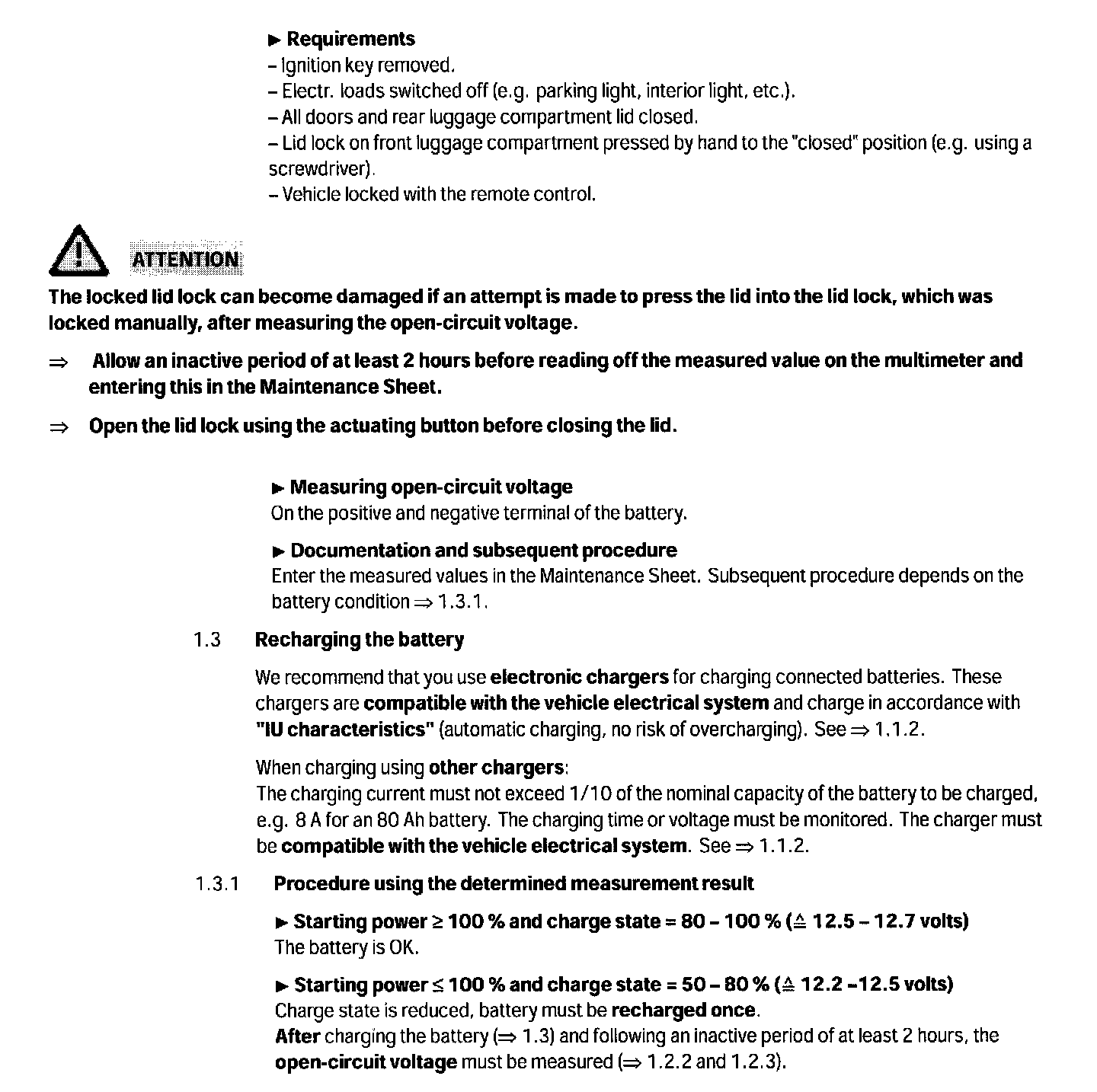 1.2.1 Determining battery condition (= starting power)