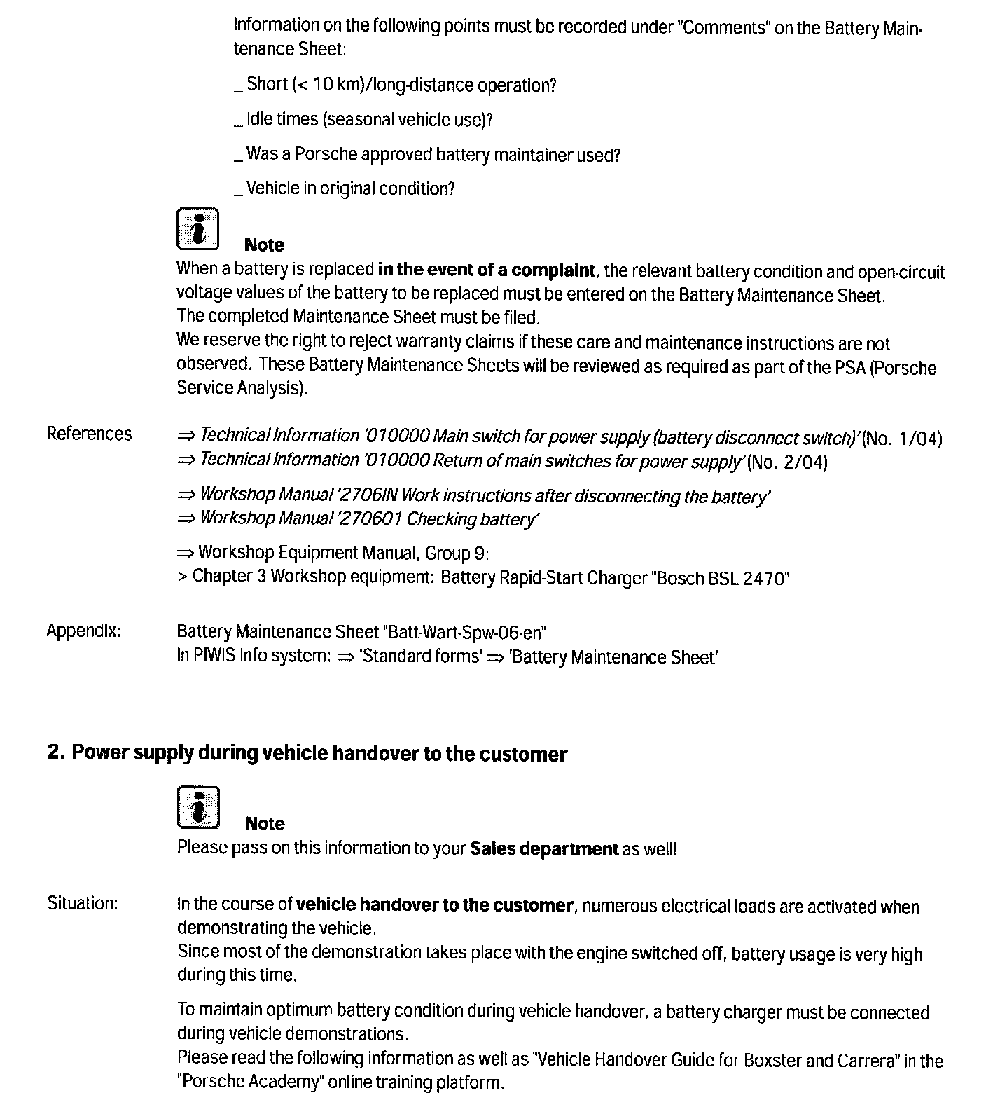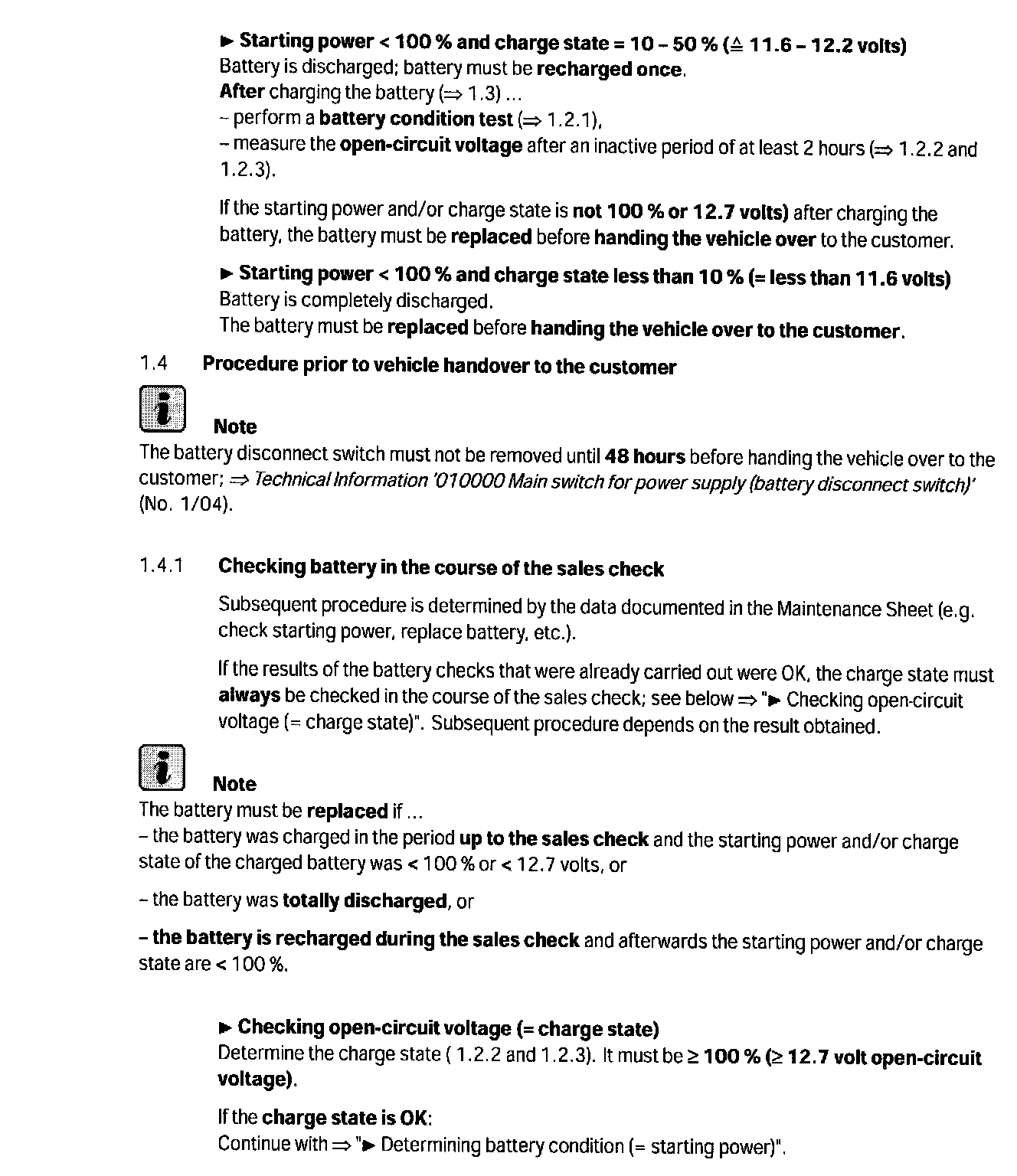 > No.1/04 - Battery care and maintenance prior to vehicle delivery