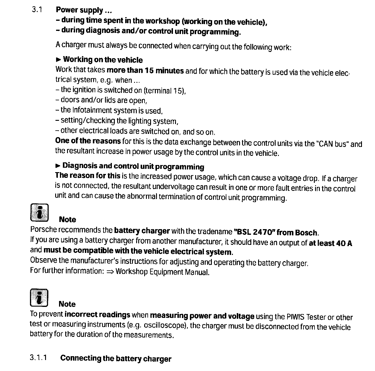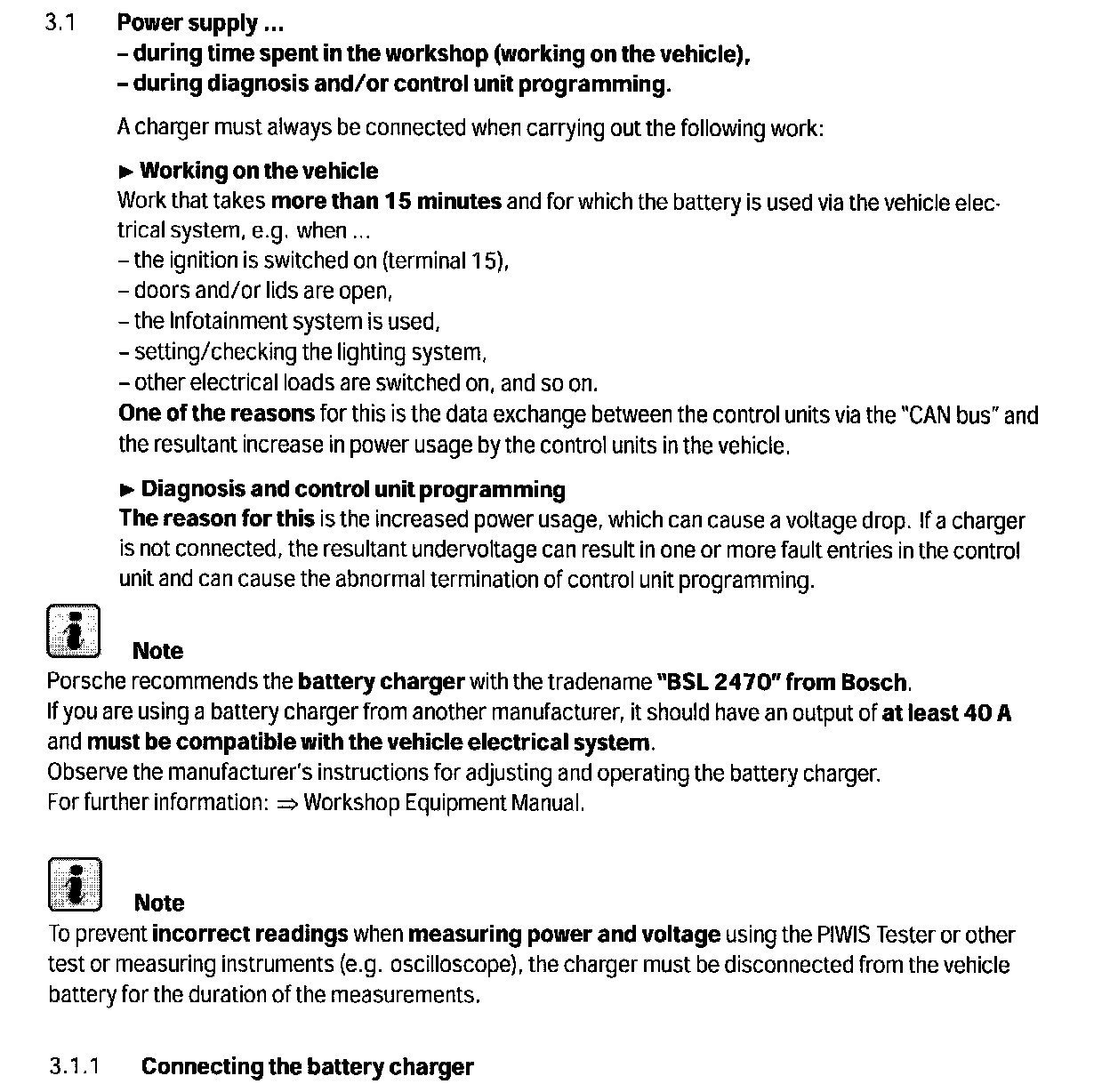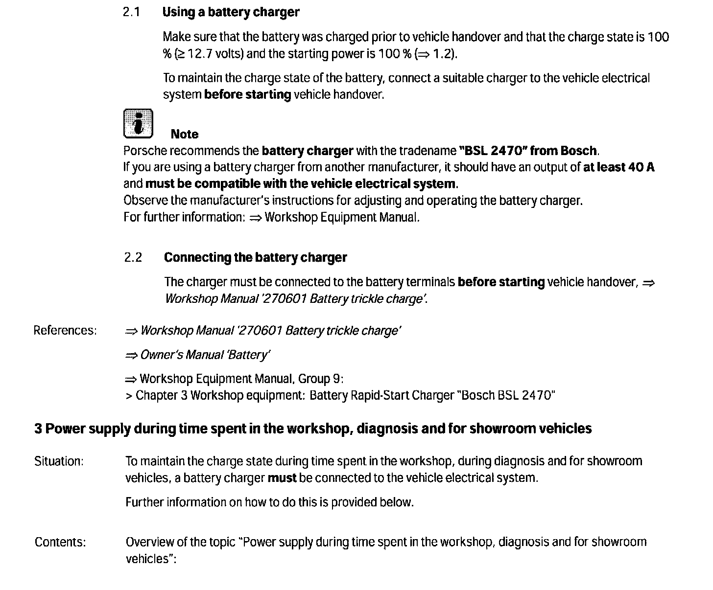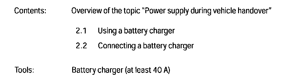 --> Technical Information '3 Power supply during time spent in the workshop, diagnosis and for showroom vehicles'