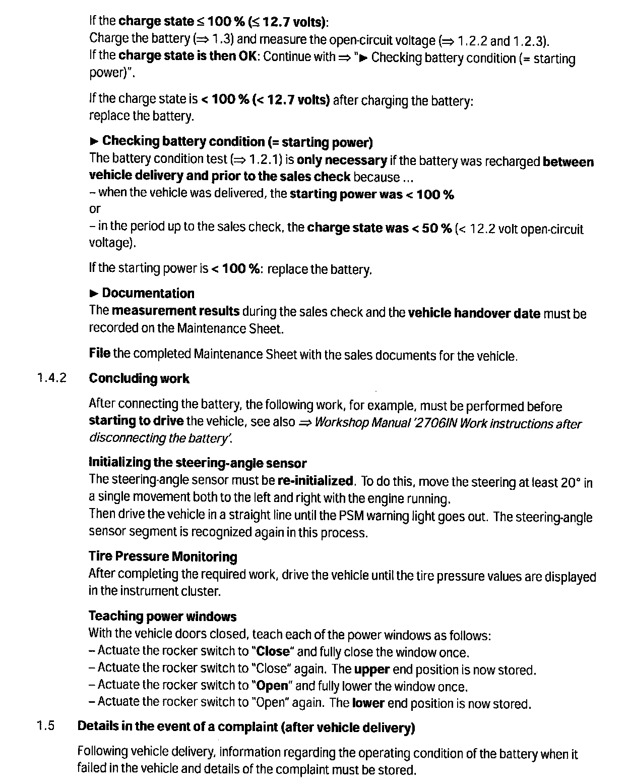 1.4 Procedure prior to vehicle handover to the customer (sales check)