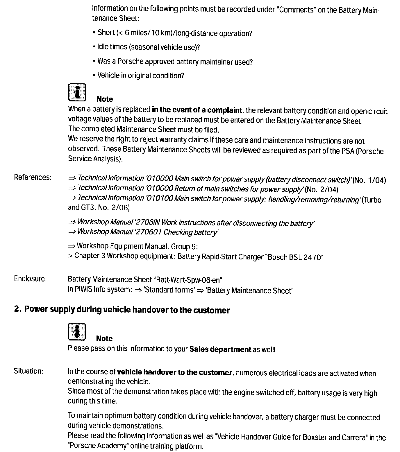 --> Technical Information '2 Power supply' during vehicle handover to the customer
