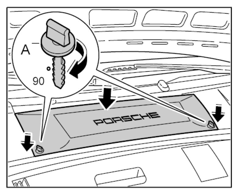 1. Open the turn-lock fasteners -A- of the battery cover and remove cover.