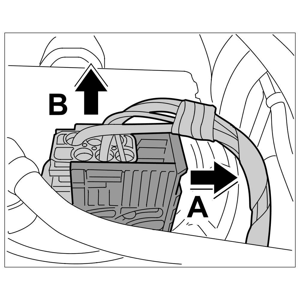 3.2. Pull off connector on headlight -arrow B-.