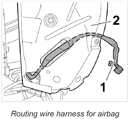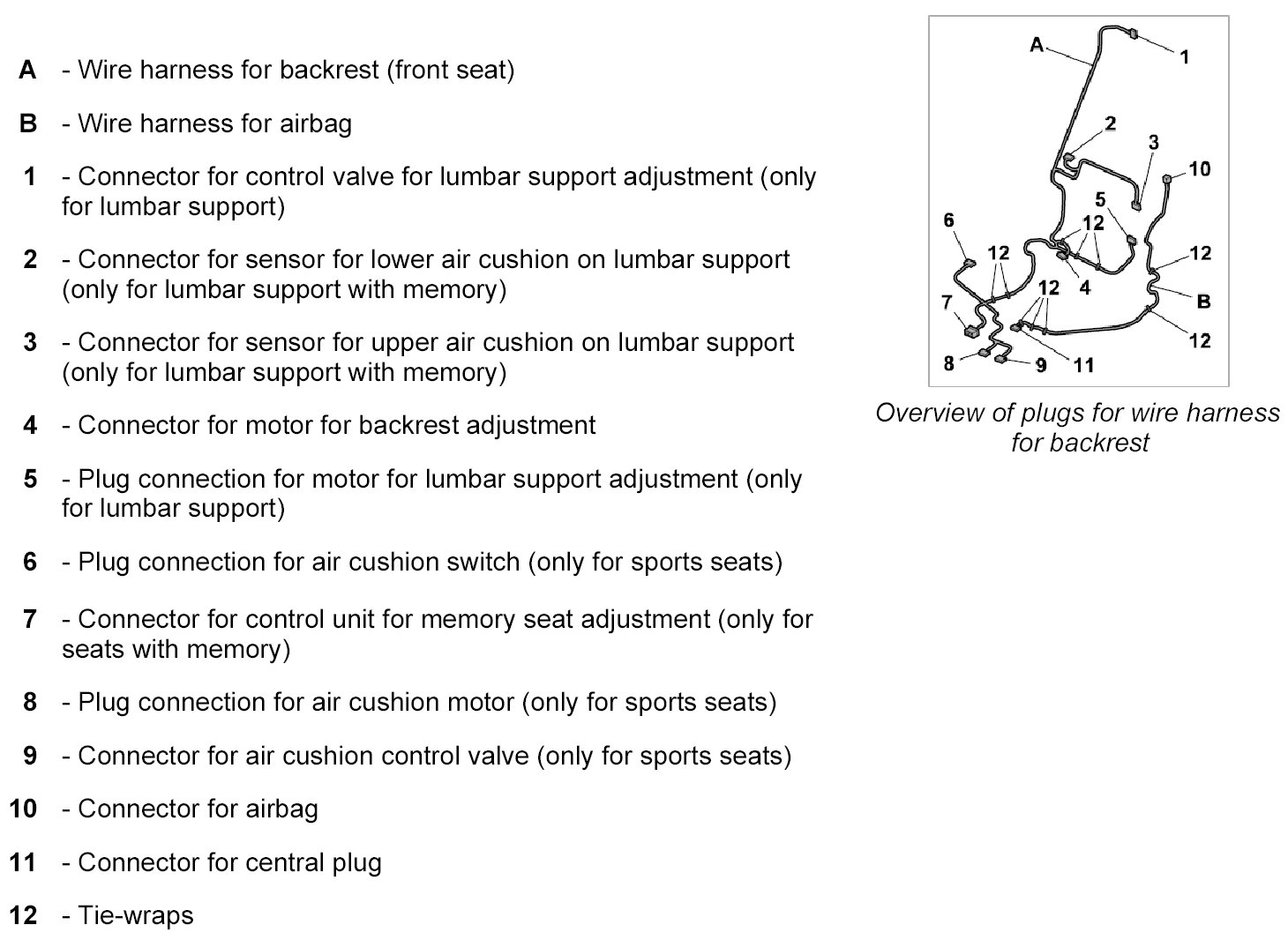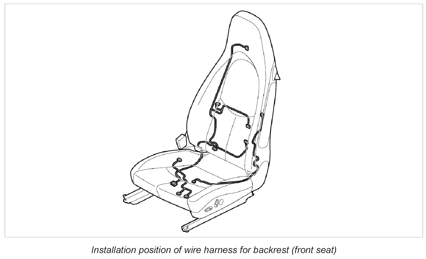 INFORMATION: For standard vehicle equipment, the wire harness for airbags is incorporated into the wire harness for the backrest.