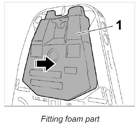 - Make sure that the hoses are not pinched. Insert hoses exactly into the cut-outs on the foam part.