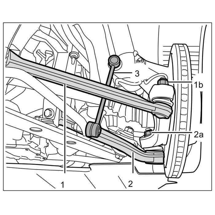 1.4. Remove transverse control arm -2- at the wheel bearing housing -2a-.