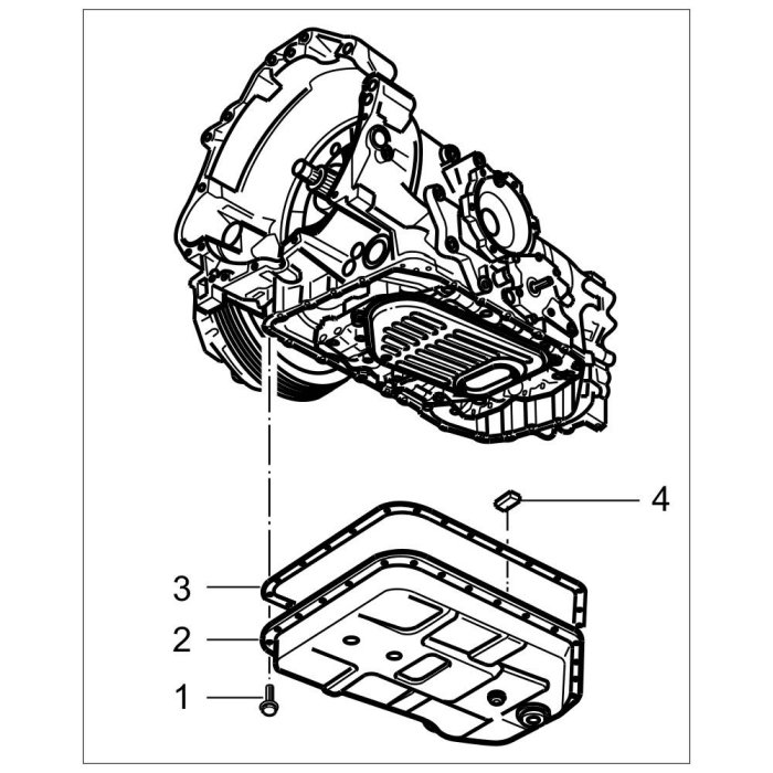 2. Remove ATF- pan -2- with seal -3-. Pay attention to the magnet -4-.
