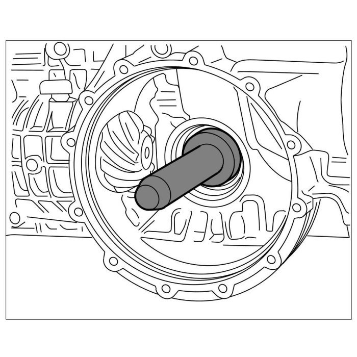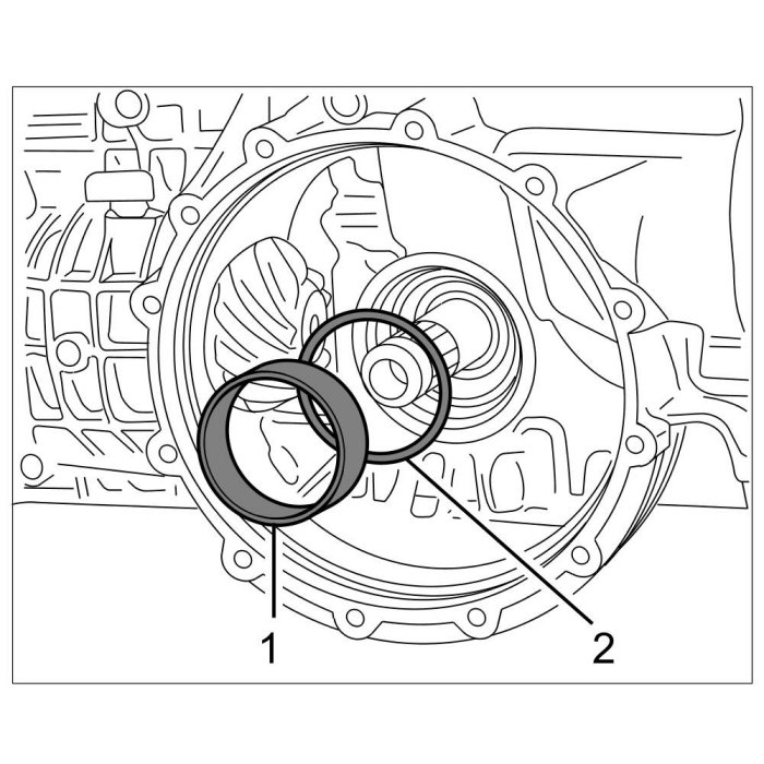1. Remove outer bearing ring -1- and adjusting shim -2- from the transmission housing by hand.