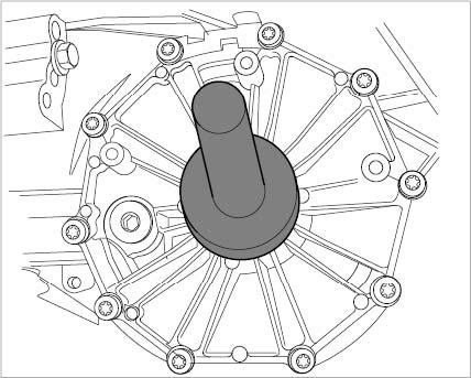 2. Drive sealing ring into the transmission using pressure piece 9738.