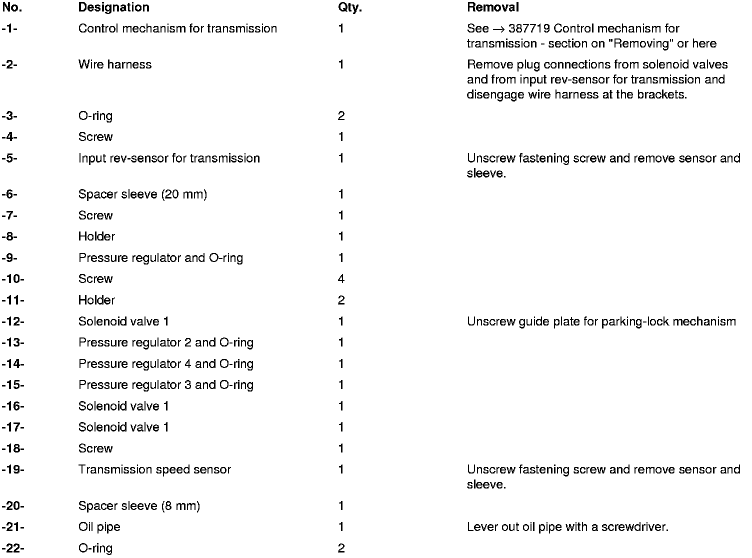 6. Remove control mechanism for transmission. -> 387719 Control mechanism for transmission - section on "Removing" 38771900 Removing and installing control mechanism for transmission