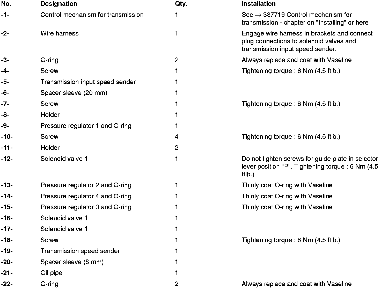 1. Install control mechanism for transmission. -> 387719 Control mechanism for transmission - section on "Installing" 38771900 Removing and installing control mechanism for transmission