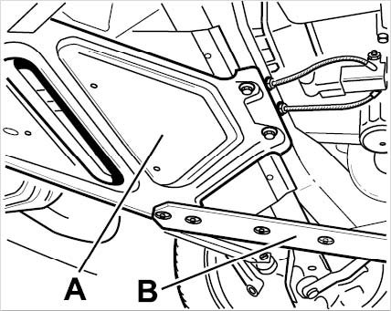 3. Remove support plate -A- (this also involves removing diagonal braces -B-).