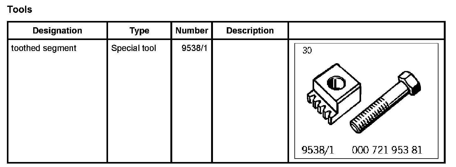 1. To counter, fit toothed segment 9538/1 to the crankcase using an M12 x 50 hexagon-head bolt (fine thread).