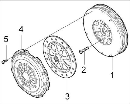 ^ 5 - Fastening screw for clutch pressure plate, (6 M8 screws)