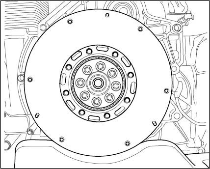 Before re-installation, clean the friction surface of the flywheel with a clean lint-free cloth that has been soaked in solvent naphtha or acetone.