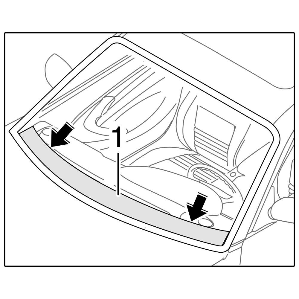 2. Apply protective film to the dashboard. Select the appropriate film -1- and insert between windscreen and damping mat.