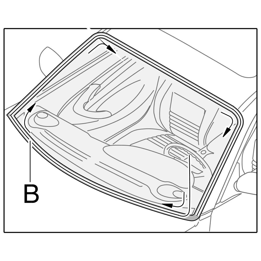 1. Pull cutting thread -B- in the direction of the arrow through the gap between the glass and the body. Use filler if necessary.