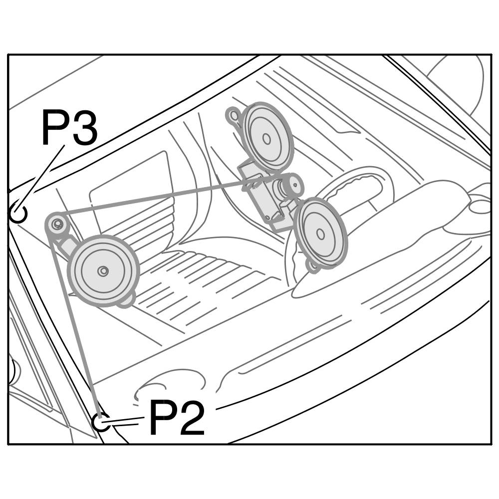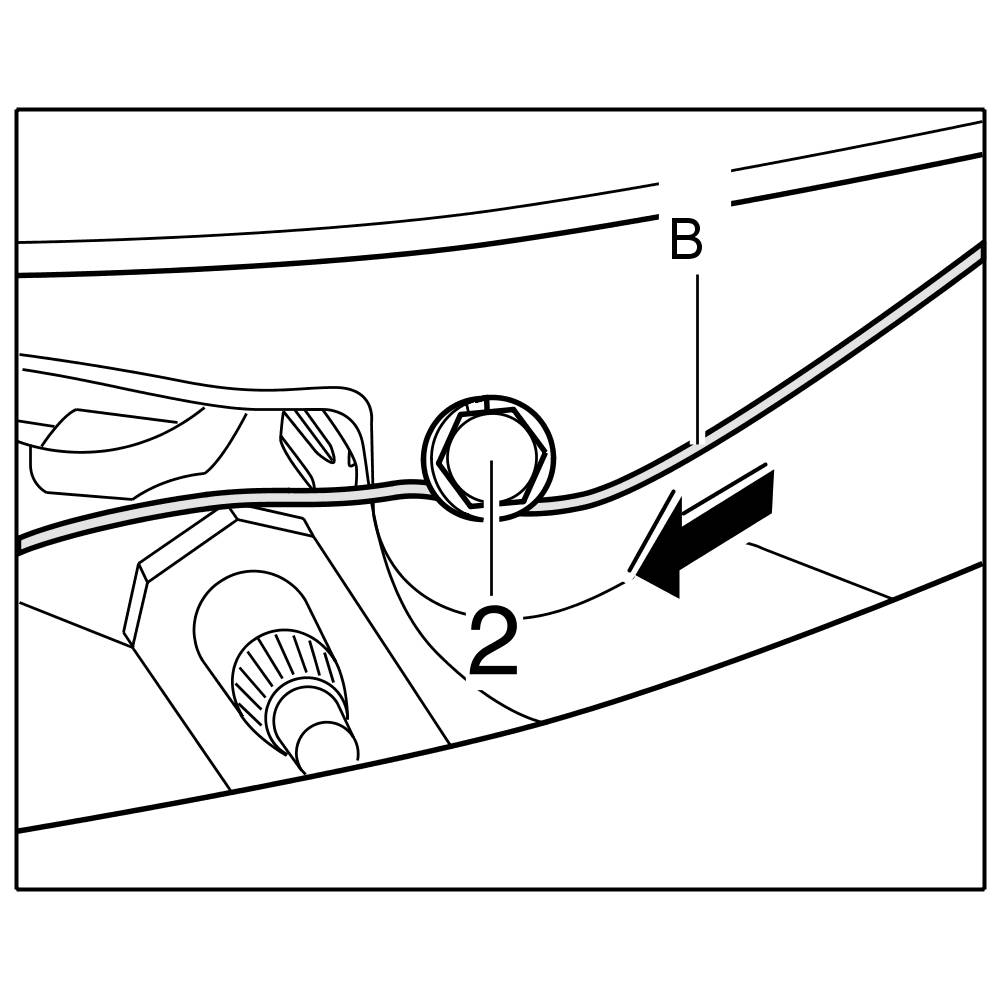 1. Attach the loose end of the cutting thread -B- firmly at a suitable point on the body with the fastening screw -2- of a component (e.g. wiper motor fastening). To do this, unscrew the fastening screw, wind the cutting thread -B- around the screw and tighten the fastening screw again.