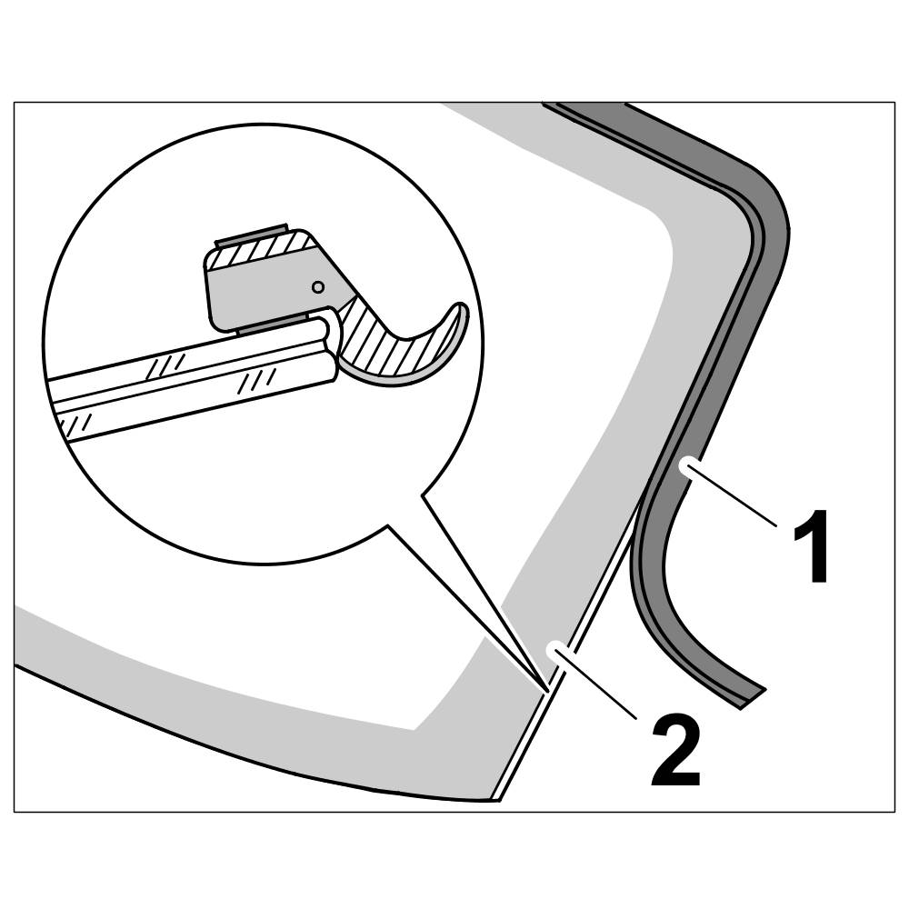 - Stick seal -1- to the windscreen -2- from one edge along the entire border.