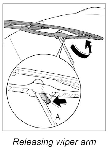 1. Raise wiper arm, release holder -A- and remove wiper blade by sliding it downwards and to the side.