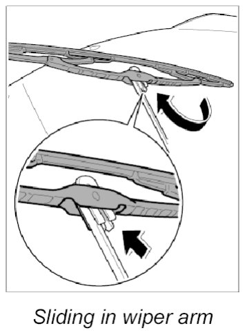 1. Slide wiper blade in from the side and engage in the wiper arm.