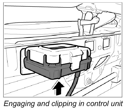 2. Engage and clip control unit into holder.