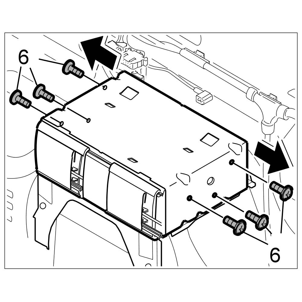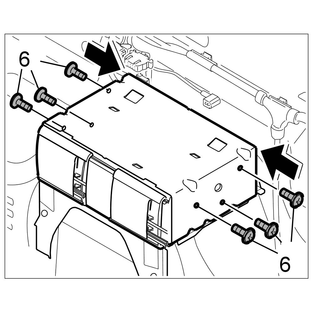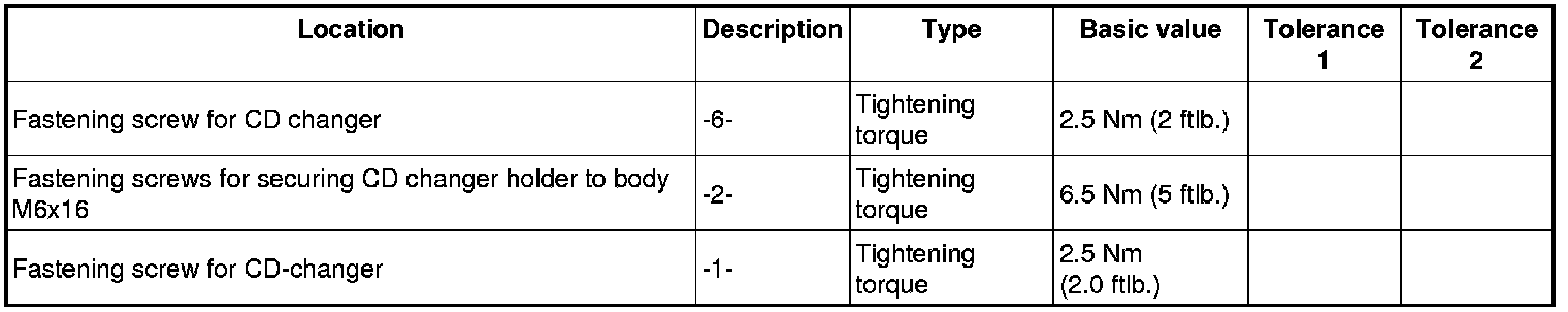 2. Insert the CD changer into its retaining frame and screw down tight with the six fastening screws -6-. => Tightening torque: 2.5 Nm (2 ftlb.)