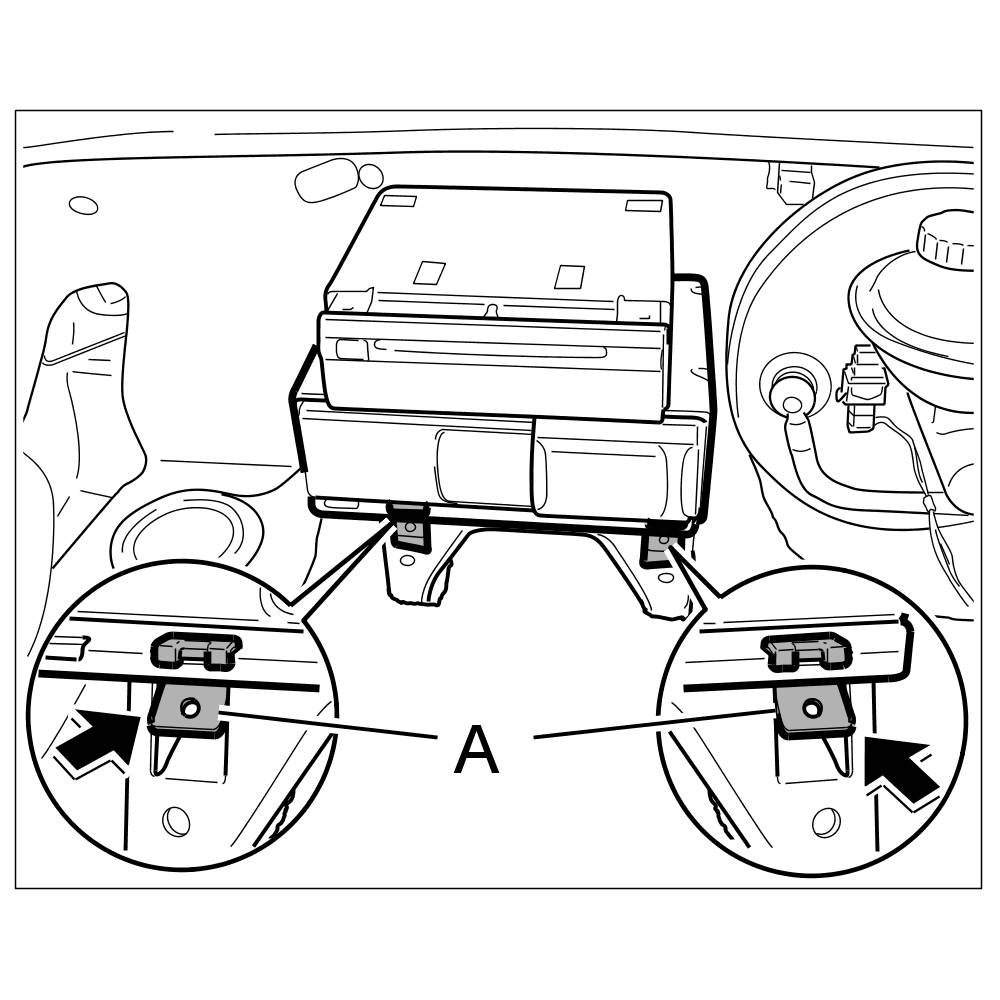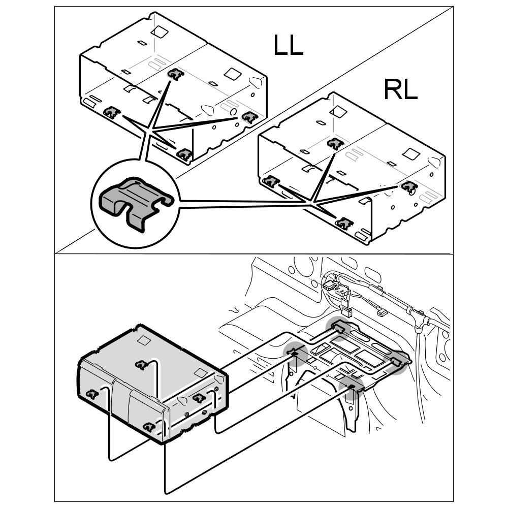 1. Replace retaining clips for CD changer retaining frame.