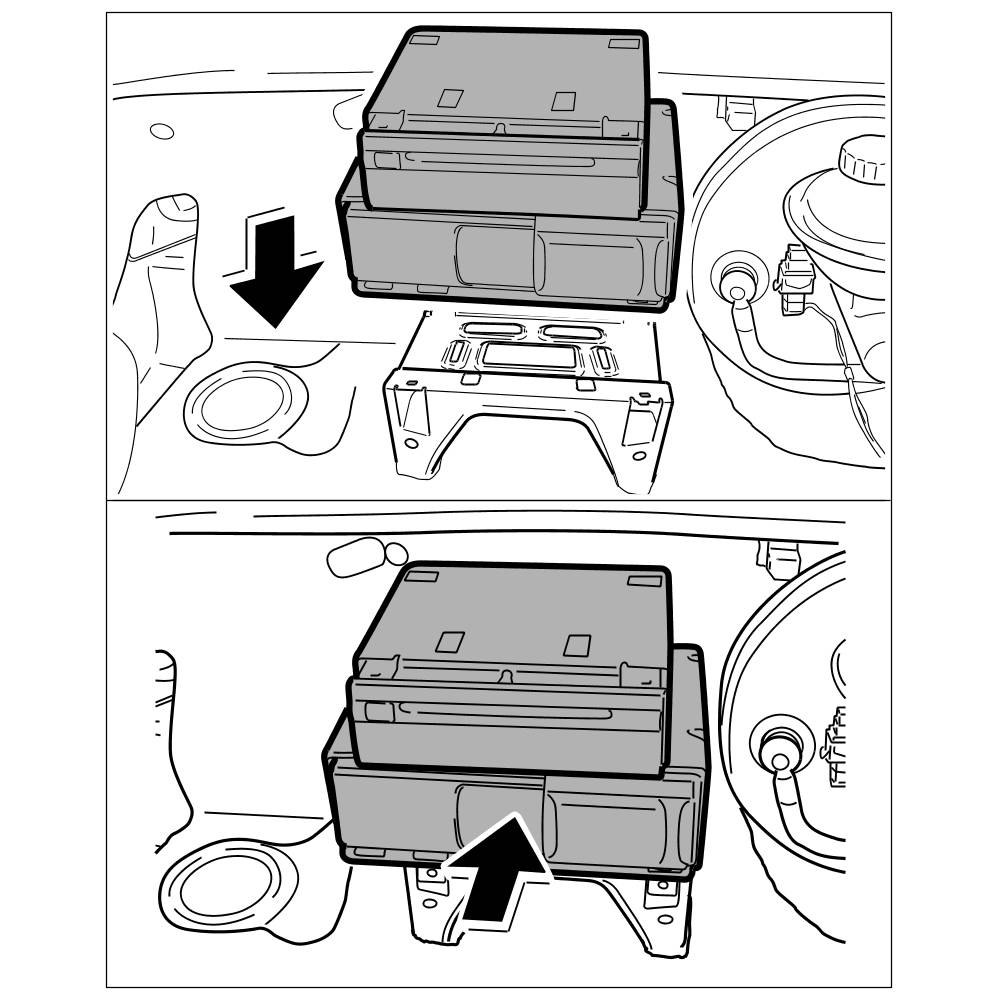 4. Position the support with the CD changer already attached on the body and move it backwards until the support clicks into place.