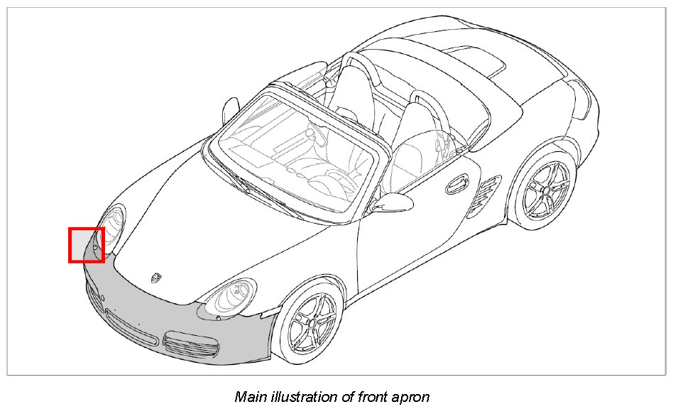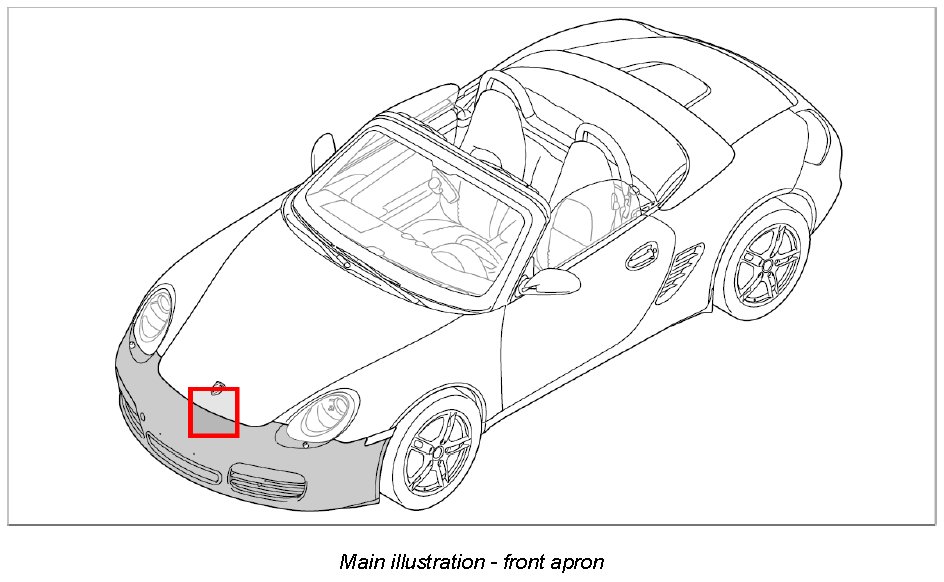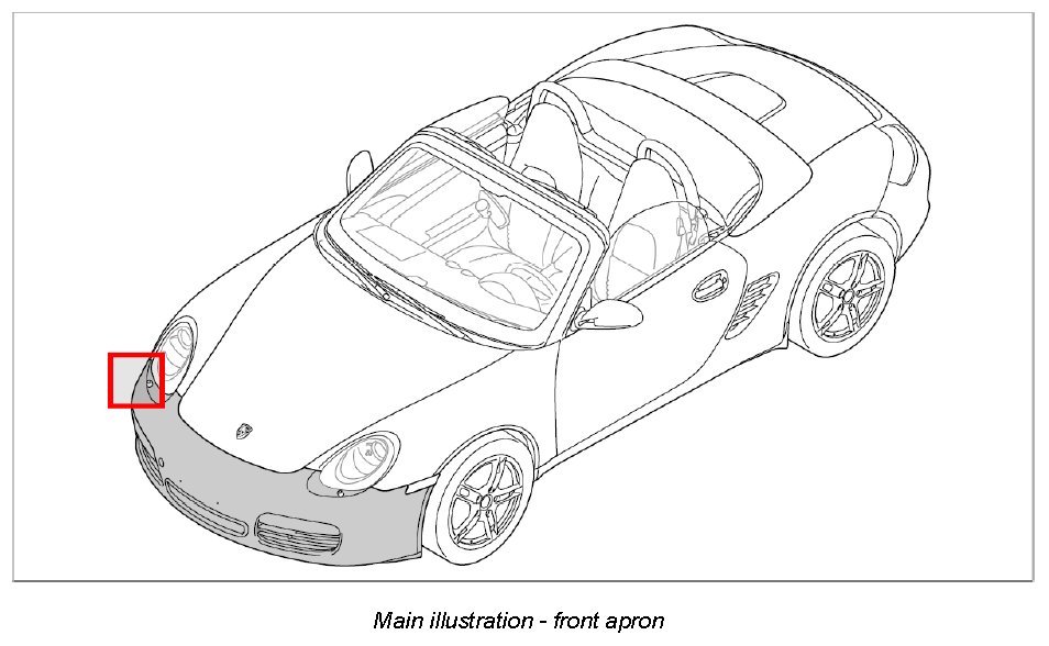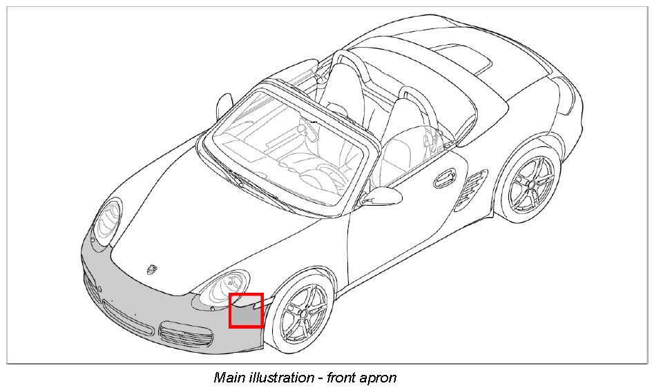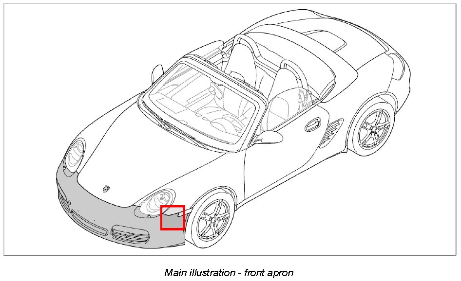 2. Check gap dimensions on lid, wing and main headlight. If necessary, unscrew fastening screws and adjust the gap dimensions by moving the front spoiler. Refer to Diagram - body gap dimensions.