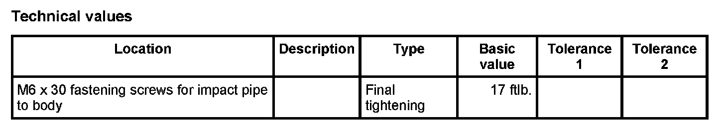 2. Screw in fastening screws -1- and tighten to the required tightening torque. Final tightening: 17 ftlb