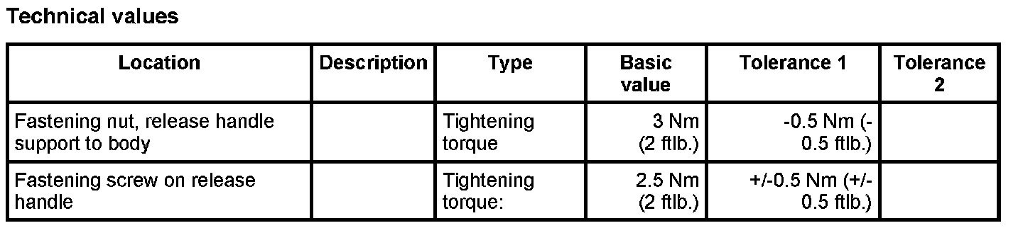 2. Position support for release handle -2- on the body and tighten with the fastening nut -3-. Tightening torque: 3 Nm (2 ftlb.)-0.5 Nm (-0.5 ftlb.)