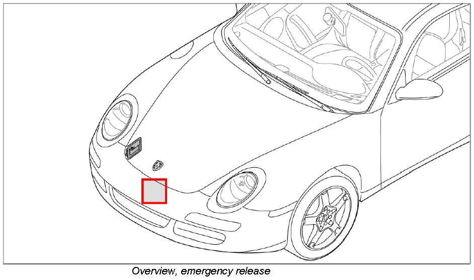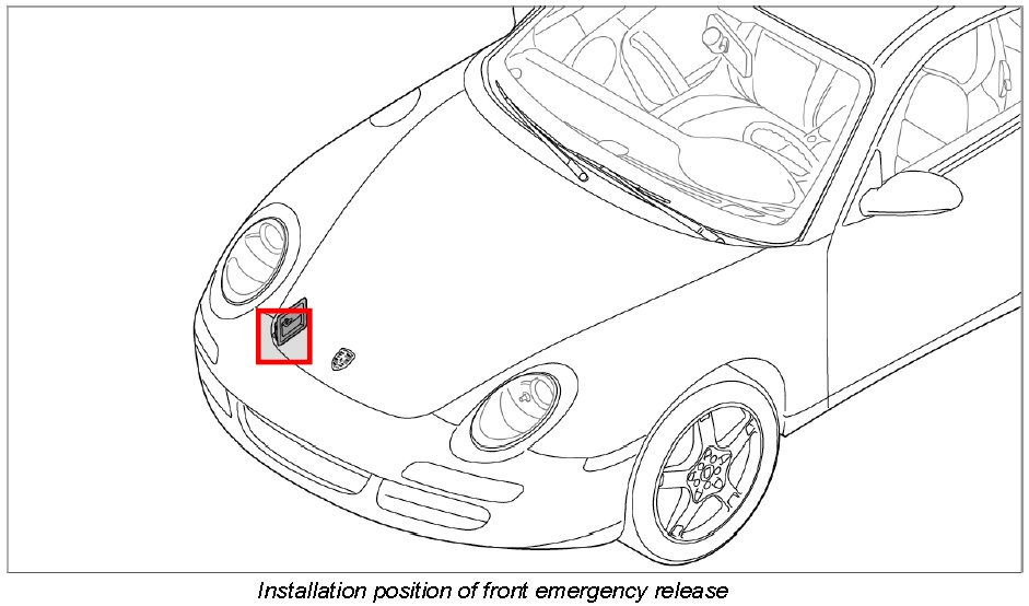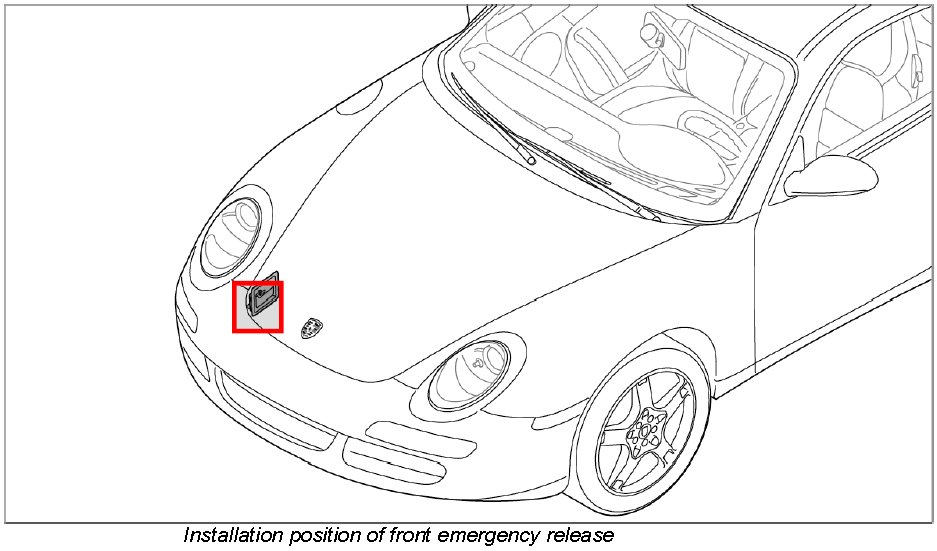 2. Upper part of lid lock = tool (Porsche spare part) must engage in the lower part of lid lock -direction of arrow-.