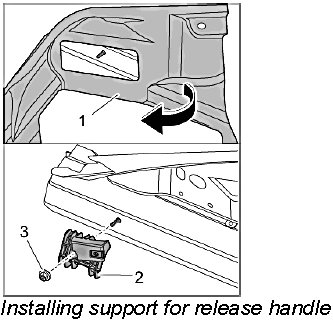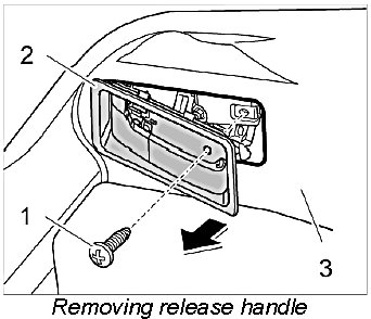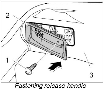 2. Unscrew fastening screw -1- and unclip release handle -2- from the luggage compartment trim -3-.